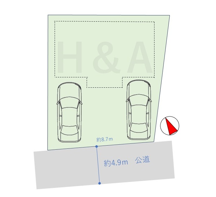 | 接道 | 不適合接道:無 一方 南西側幅員4.9m 、間口8.7m (公道) |