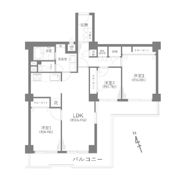 | 専有面積 | 壁芯 65.06m² | バルコニー面積/向き | 7.56m²/北 |