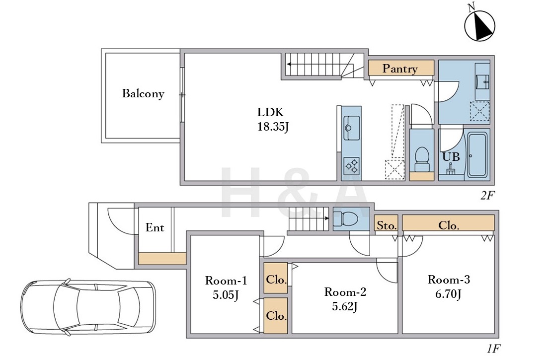 ・2階建て3LDK+カースペース