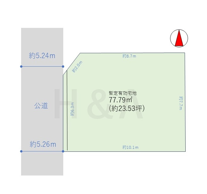 | 接道 | 不適合接道:無 一方 西側幅員5.2m 、間口6.3m (公道) |