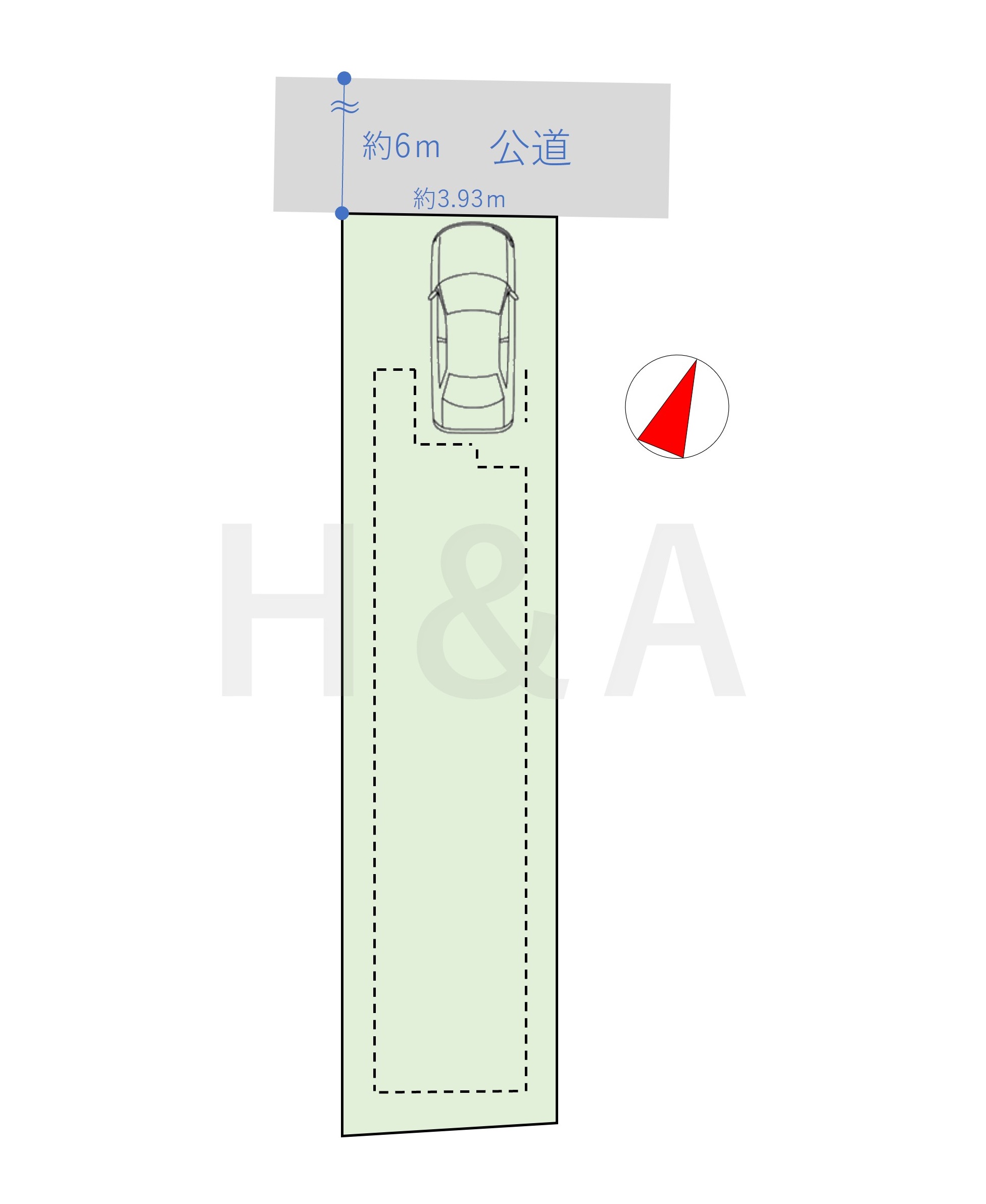| 接道 | 不適合接道:無 一方 北側幅員6m 、間口3.9m (公道) |