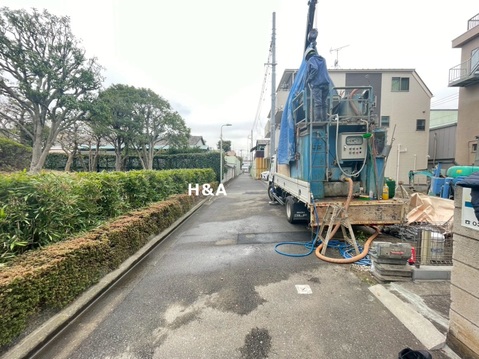 敷地内より現地を撮影しました地盤改良中の様子です。(2026年3月2日撮影)