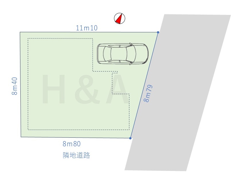 | 接道 | 不適合接道:無 一方 東側幅員4m 、間口8.7m (公道) |