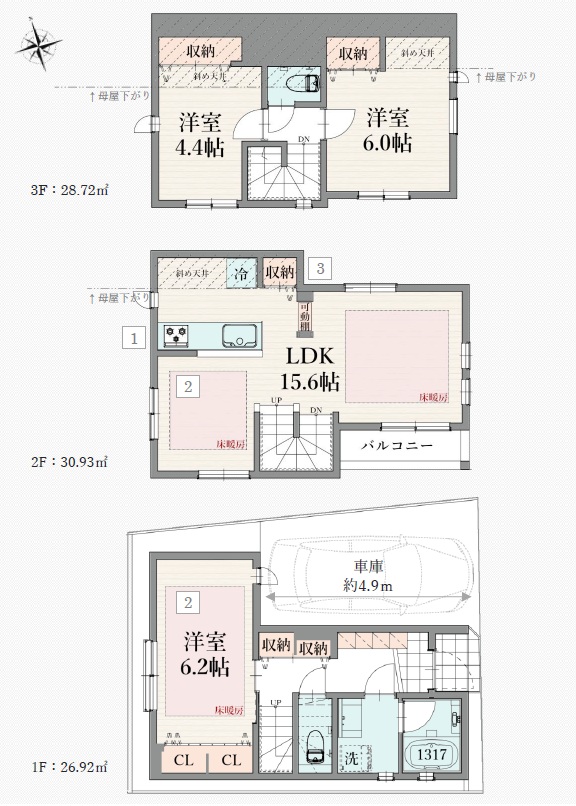 | 延床面積 | 実測 86.57m² | 土地面積 | 実測 52.1m² |