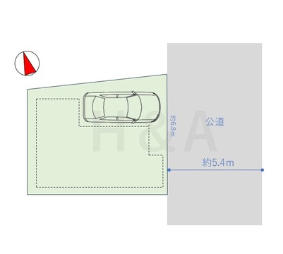 | 接道 | 不適合接道:無 一方 東側幅員5.4m 、間口6.8m (公道) |